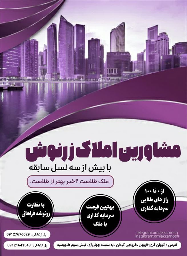 گروه مشاورین املاک زرنوش با بیش از سه نسل سابقه کاری و شناخت کامل منطقه در غرب کرج