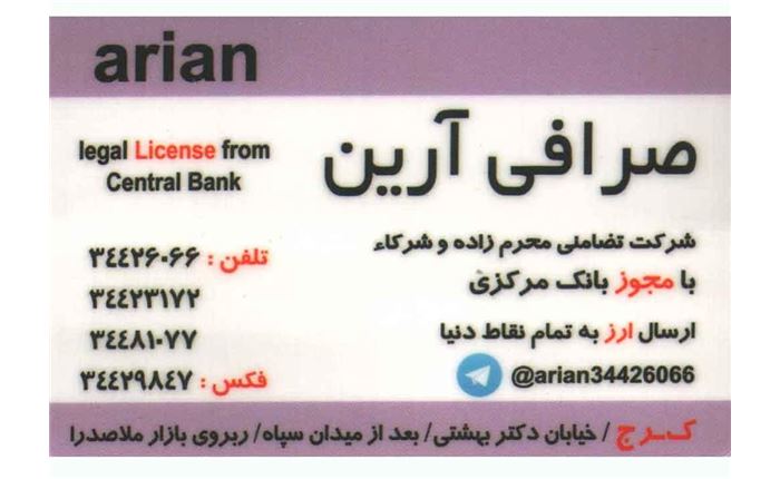 کرج ، خیابان شهید بهشتی ، روبروی بازار ملاصدرا ، جنب داروخانه ایران ، پلاک 1513
