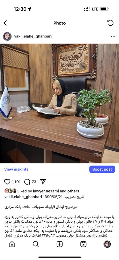 خانم الهه قنبری وکیل پایه یک دادگستری کانون وکلای دادگستری مرکز